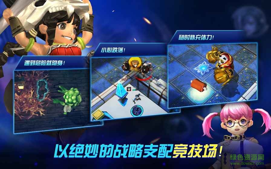 3、在游戏中采用了即时对战的玩法,玩家可以操控自己的角色与敌人在战场中进行对决,游戏中既有3V3的团队战,也有1V1的决斗模式,在场景中除了可以与敌人进行正面交锋之外,玩家还可以利用地图上的陷阱或者构造与对手进行周旋,并最终将敌人消灭。