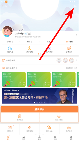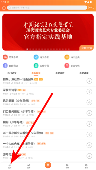 1、打开为你诵读APP,点击底部导航栏最左侧的我的,进入个人页面。