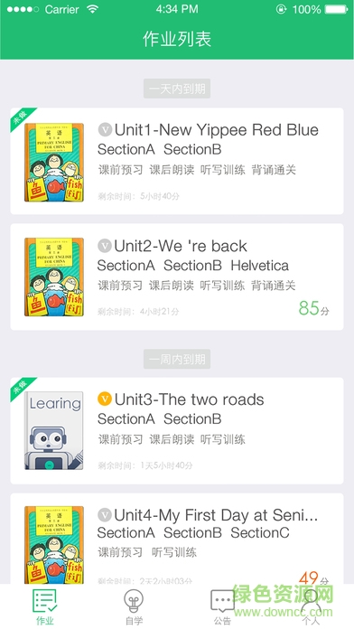 彩虹英语主要是针对小学听说学习的一款软件;学生可以通过应用完成老师布置的作业;也可以自选教材进行学习。