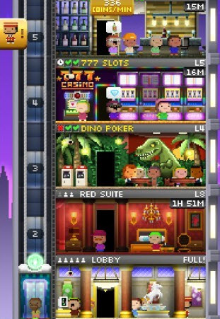 小小摩天塔维加斯Tiny Tower Vegas是模拟经营游戏小小摩天塔最新续作,这次在续作中加入了赌场玩法,游戏中将设有16个待解锁的角色,并且在以前的100种地板的基础上还增加了不少新鲜的装修样式,同时还可以参加玩家俱乐部。游戏的主旨就是在拉斯维加斯开一个赌场,助你圆了土豪梦。虽然整个土豪梦仅仅只是个游戏而已,但在众多的模拟经营游戏中,开赌场无疑是一个既豪放又新颖的题材。