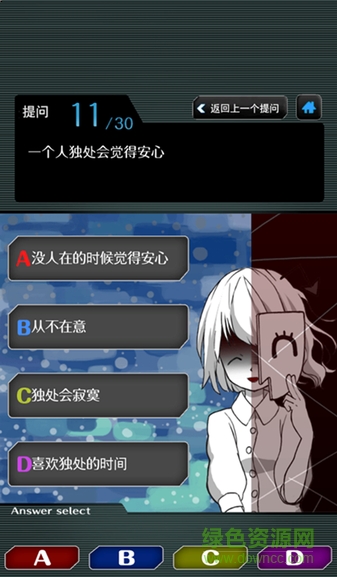 里人格诊断汉化版是一款非常好玩的休闲游戏,通过回答问题来解决心中的疑惑,喜欢文字冒险游戏的朋友们不要错过了,看看你心中的第二人格是怎么样的。欢迎大家来绿色资源网下载试玩!