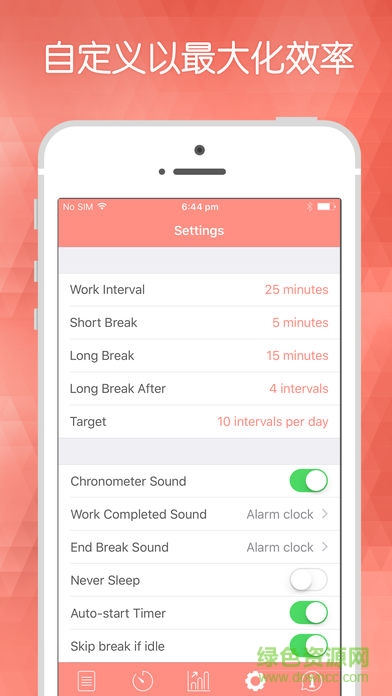长时间工作对于我们离不开电子屏幕的这一代来说是个真正的挑战。通过将单个任务分成多段时间集中精力来完成,中间有休息,这会让你把工作做得更好。这也是保持工作激情和集中精力的极其有效的方法。它可以帮您按照每天、每周或自定义时间创建任务、计划休息时间并追踪您的进度。