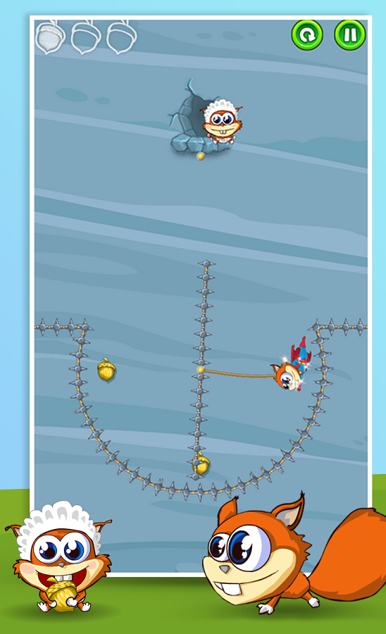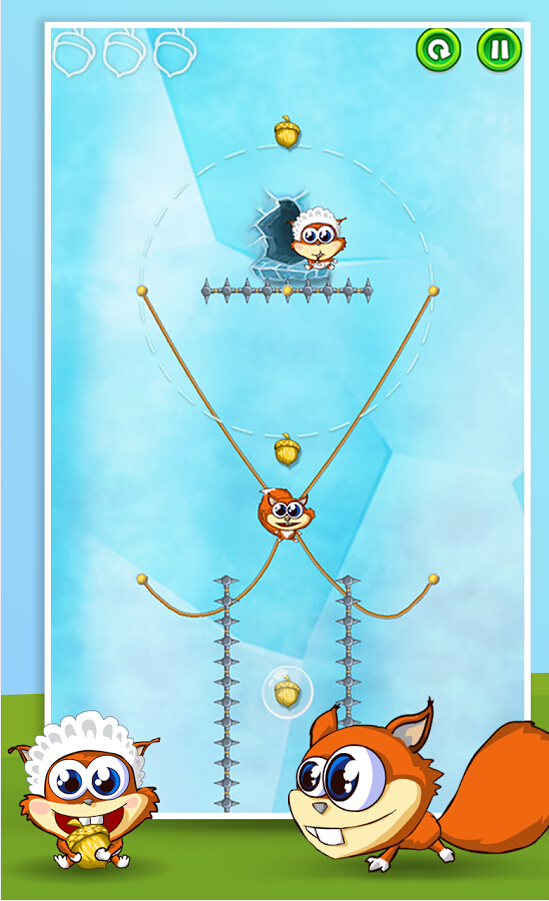 收集坚果(Catch The Nuts)是一款模仿了《割绳子》的有趣的益智休闲游戏。游戏非常的简单娱乐,玩起来非常放松,游戏一开始,你会看到一只饿的瘪瘪的小松鼠,于是松树妈妈决定出去给小松鼠寻找坚果,但是一个个见过都被悬浮在了空中,松树妈妈急得自己团团转,但幸好这时候你出现了,机智的你能帮助松鼠妈妈获得坚果吗?