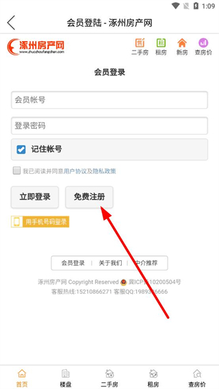 1、在涿州房产网界面,找到会员登录选项并点击,进入会员登录相关操作页面。