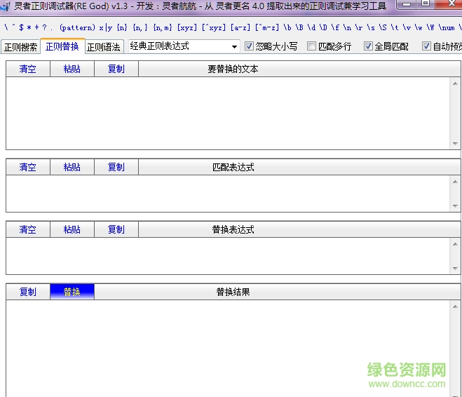 灵者正则调试器(RE God)是一款专为编程人员打造的正则表达式调试工具,通过该软件不但可以调试,还可以替换表达式哟,需要的朋友赶紧来绿色资源网下载吧