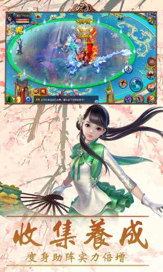 特效绚丽的战斗场面只是游戏中的一部分,除此之外,成长过程中还具有经脉、天命以及诸多奇遇相伴;各色坐骑与你闯尽八方仙门,绝佳法宝陪你屠尽十层魔狱,流光翅膀让你遨游九天,超强幻武助你问鼎仙峰!更有各种萝莉形态的灵体仙童协助你共同作战,修炼之路,如此快哉!