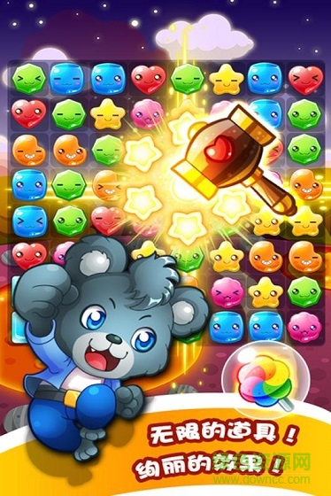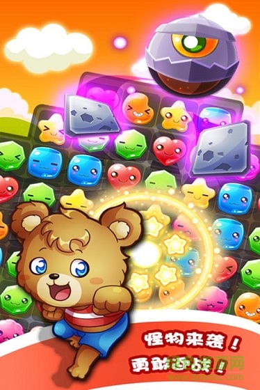 伴随儿童成长的好朋友、知名动漫形象杰米熊,和他的小伙伴们米米熊、小小熊、眼睛熊、黑熊波波陪你一起探险魔瓶世界,打败大魔王,拯救世界。不同于传统三消,《杰米熊之魔瓶大冒险》要消除的都是各类萌萌哒小宝石。当你移动或消除图像,乃至轻轻触摸到它们的时候,这些小宝石们都会发出各种好玩有趣的表情。除此以外,游戏中还有更多有趣的设计,等你来体验。