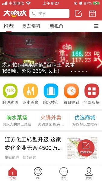 大响水最新版为你提供了相当丰富的本地资讯,你可以在大响水中更好的了解响水地区。新闻论坛于一身,让本地的网友可以在手机平台上感受到更多丰富的内容体验。欢迎下载!