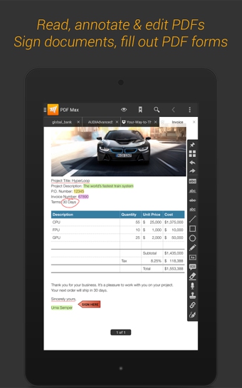 PDF Max一款功能全面同时针对触摸操作进行了专业优化的pdf阅读器,界面设计非常合理,操作也很方便。这款pdf阅读器能完成你在电脑上的所有操作,软件的渲染和一些小功能能节省设备的耗电并让界面更加清晰。对于办公一族来说,非常实用。