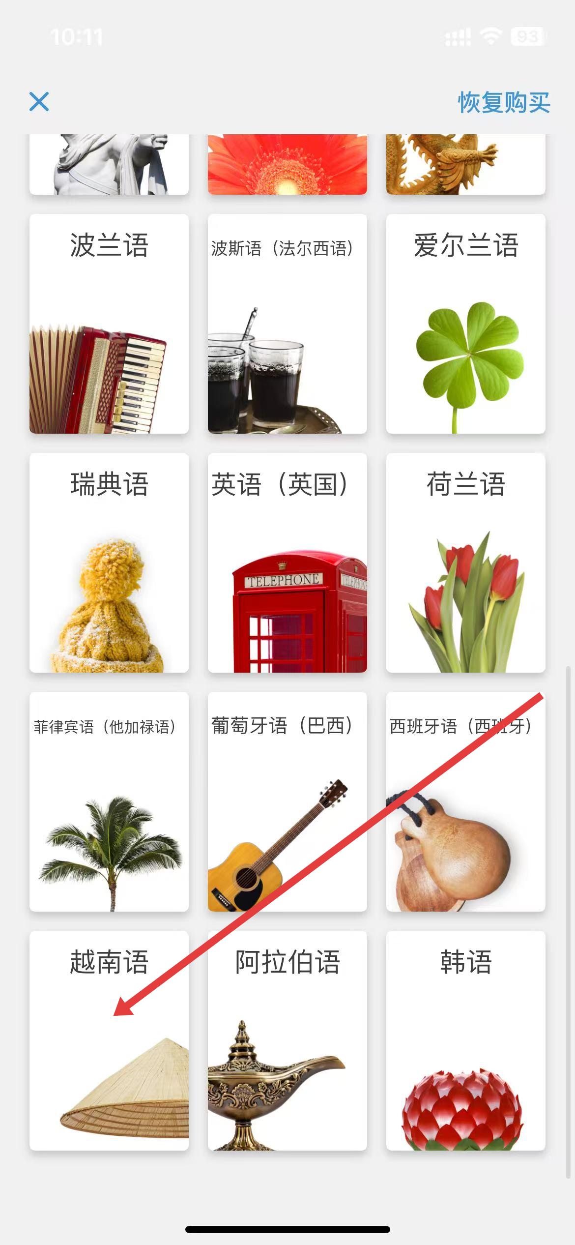 4、点击越南语图标,即可将学习语言切换为越南语。