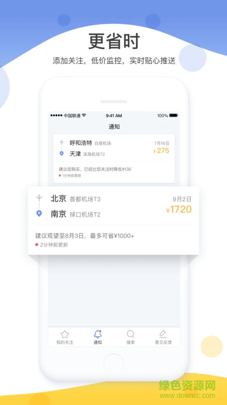 -根据用户关注的航线日期,实时监控,发现合适的价格,即推送给用户。只需点击关注,即可获得贴心推送