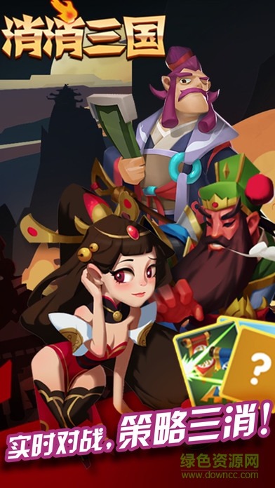 消消三国是一款非常好玩的三消休闲对战手游,游戏画面简洁清新,玩家只需要将横向或竖向相同的三个元素连在一起即可进行消除触发强大技能,喜爱的朋友赶快到绿色资源网下载体验吧!