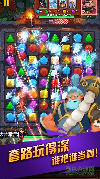 回合制三消对战游戏,和全球玩家来一场实时对战。只要纵向或横向凑齐三个同样的元素即可消除,尽快的收集魔法,释放一个接一个的锦囊来攻击对方吧!或者直接消除宝剑和对方硬怼一波。你也可以过关斩将,挑战所有的三国名将,看看谁才是三国第一战神!