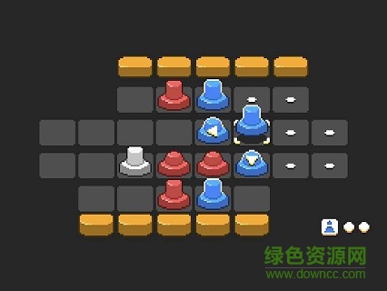 非常精巧的双人游戏,在一只手机上面玩,应该是原创玩法,之前貌似没见过这种模式。简单说一下玩法,红蓝两方对称,各自有两个类型的棋子,一种是凸起的,一种是扁的,扁的棋不能推人,只能用来站位或者卡位,凸起的棋子可以用来推人,不过一回合只能推一下,并且推了之后自己也会石化一次。石化状态的棋子别人是推不动的。如何获胜?只需要把对方任意一只棋子推出棋盘就赢了。