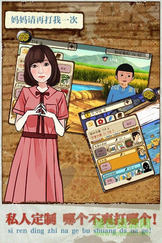 妈妈再打我一次无限金钱正式版是一款轻松爆笑的休闲手机游戏。游戏采用怀旧复古的画面风格,同时融入许多时下流行的网络元素,简单的操作玩法,丰富的养成元素,再加上恰到好处的恶搞风格,让玩家体验到一款有趣爆笑的休闲游戏。