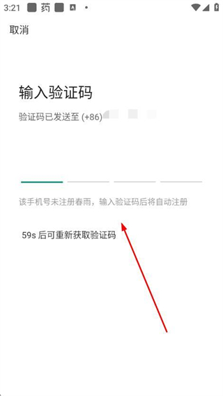 4、在输入验证码页面填写收到的验证码,完成账号注册。