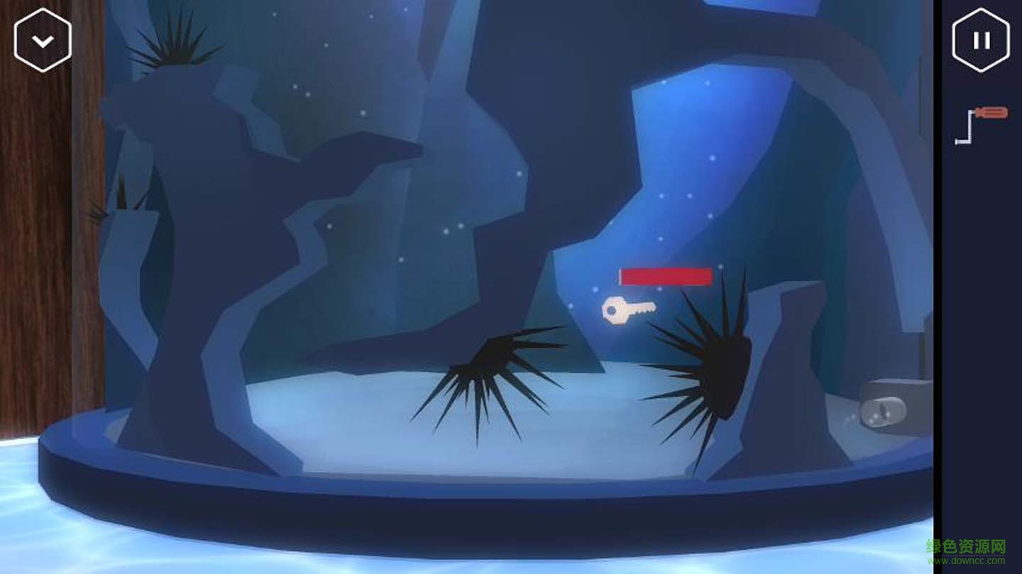 在回到门口,会发现鱼缸中有一枚钥匙,,二话不说,用磁铁将钥匙移动到鱼缸的过滤器,在打开过滤器就可以拿到。