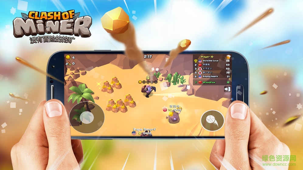 通过挖取金矿或击倒对手来累积积分,在倒计时结束前尽可能的累积更多的积分。