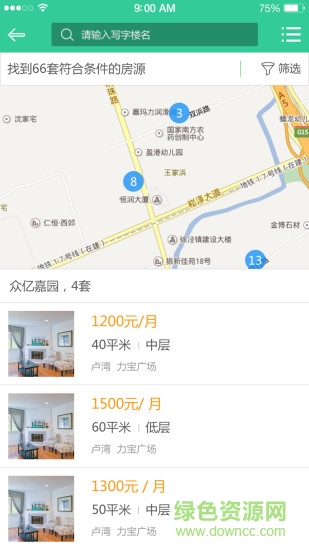 众租app是一款租房app,实时定位地图助您了解身边附近租房信息,轻松筛选您想要的楼盘资源,非常方便实用,有需要的朋友欢迎到绿色资源网下载体验!