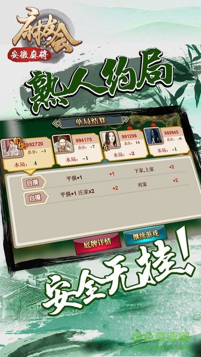 安徽麻友会app是一款极具安徽地方特色的手机麻将游戏,以地方本土玩法为主玩法简单胡牌快速,大胡杠牌加倍畅玩无限激情。快来绿色资源网下载体验吧!