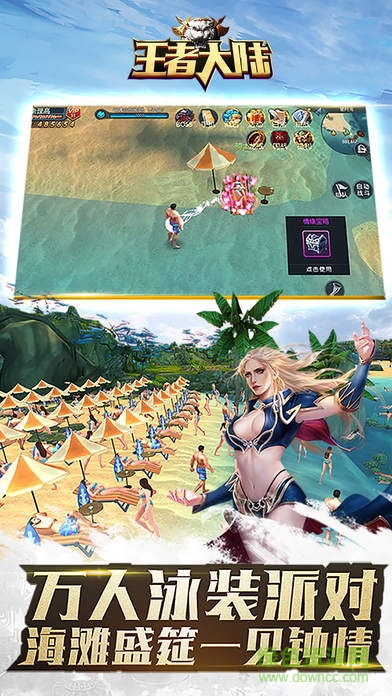 驭龙双飞,万人pk,实景再现魔幻史诗场景!海滩盛筵泳装party躺着涨经验;组团抢boss激情全天无休;特色史诗级攻城战万人同屏pk!