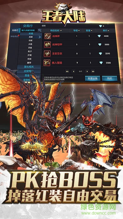 野外pk抢boss!掉落红装自由交易!稀有坐骑自由捕捉!种类丰富双人骑乘!全服玩家同屏!主城场景国战!