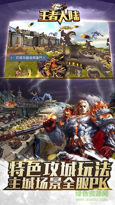 游戏采用主城作为国战场景,不再是传统的副本战斗,所有人在攻城时刻都能感受到战争的激情,守城的玩家在国王的带领下前往城门组织摧毁敌旗,操作炮塔等守城措施,攻城玩家也将乘龙驭兽展开进攻。