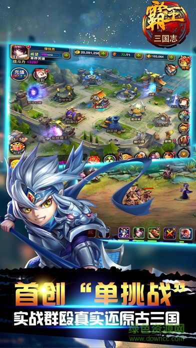 霸王三国志手游是一款全新的手机三国题材游戏,这里为你模拟了最真实的三国战场,这里有超多的三国武将登场,只为和你在战场上一展宏图,还有超多特色玩法等你来玩,喜欢的朋友就赶快来绿色资源网下载试玩吧!