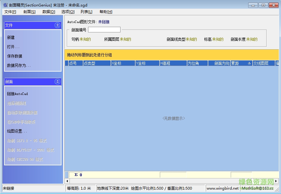 对于获取的数据,程序采用了数据库技术进行存储(本软件内置数据库引擎,不需要额外安装数据库访问组件),可以方便的进行剖面数据的排序、检索、统计工作。并且程序支持用户自定义各剖面点的类型,并在绘成的剖面图中用单独的图层标示出来(如特殊地物点、地质点、剖面交点等等)。