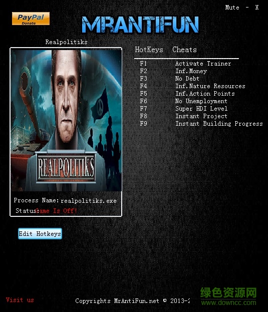 现实政治八项修改器是针对同名pc游戏玩家设计的一款辅助工具,使用修改器玩家可以一键修改游戏中的金钱、动作点、负债等属性,适当的修改游戏属性可以轻松体验游戏乐趣,欢迎来绿色资源网下载!