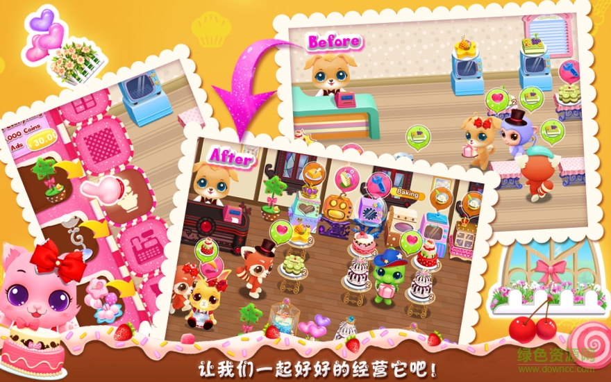 宠物蛋糕店中文正式版无限金币版是一款内购免费的汉化版可爱经营游戏,游戏道具丰富,操作轻松,玩家的任务是帮助libii经营好蛋糕店,有兴趣的朋友欢迎前来下载!