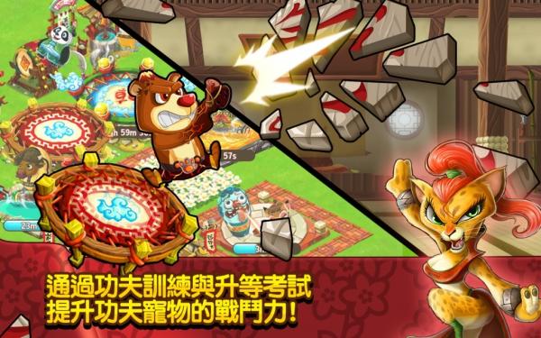 包含猫、猕猴、龙和熊猫在内的70多种功夫宠物,不同属性进行组合,还可获得新的功夫宠物。