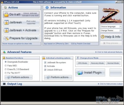Ziphone目前是使用最多的一款激活、越狱和解锁iPhone手机的工具之一。同时ZiPhone也支持iPod Touch的越狱。除了其他修复功能,目前这一新的版本能够修复用户以前提到的“Greyed out Wi-Fi”问题。