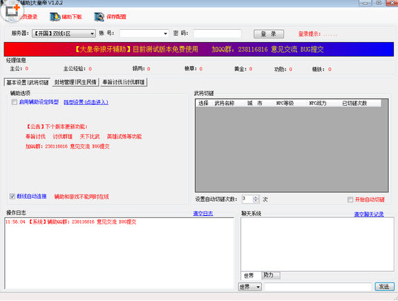 大皇帝狼牙辅助是为同名策略页游制作的是一款最新的网页游戏大将军的辅助工具。一般策略游戏在建造,整讨的时候都比较耗时耗力,这款辅助自动建设升级、自动讨伐群雄,省去玩家不少时间,大皇帝狼牙辅助主要是用于解决玩家繁琐的操作,在节省时间的同时追求最快的升级速度,可以完成日常的各种任务,自动升级,剿匪,民生事件,国战等节省时间,让玩家方便双手,轻松升级玩游戏。大皇帝狼牙辅助工具这款软件功能非常齐全,可以帮助玩家自动挂机游戏,对于讨伐、挑战、防守等实质性操作也能完美自动操作,有了它再也不用担心兵败啦。带给您更加轻松的游戏乐趣,喜欢的赶紧试试吧。