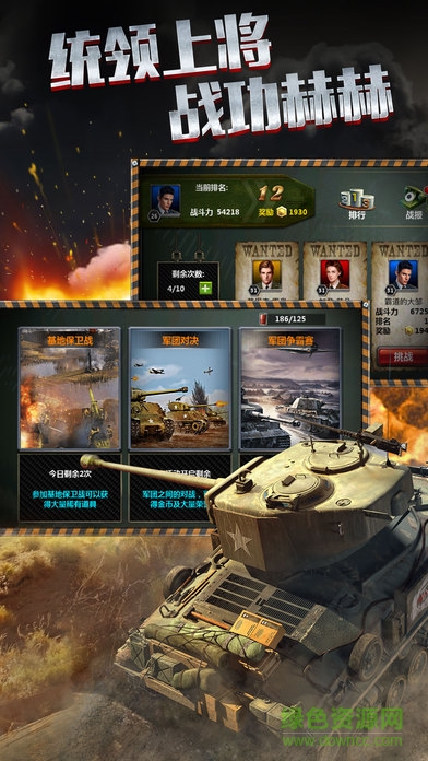 三、以二战时期坦克集群战为主要游戏内容,将二战时期的著名坦克、经典战役完美结合,以独创的战车集群式战斗和丰富的养成玩法,打造了标新立异的游戏结构!!