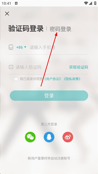 3、进入登录页面后,找到并点击上方密码登录选项。