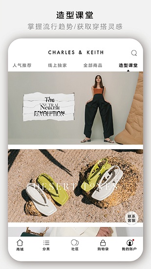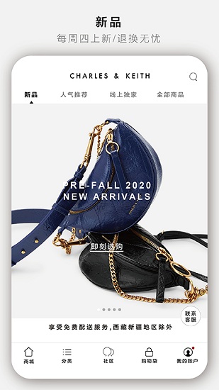 进入CHARLES & KEITH APP的世界,在线浏览、选购最新时尚鞋履、包袋和配饰。LOOKBOOK和趋势主题为探索之旅注入更多时尚细胞,带来赏心悦目的购物体验。