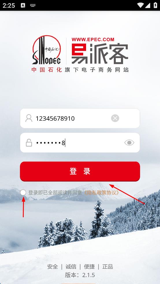 4、勾选登录即已全部阅读并同意隐私政策协议,点击“登录”按钮。