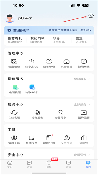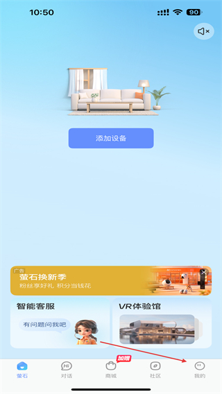 1、启动萤石云视频,在首页点击右下角我的图标。