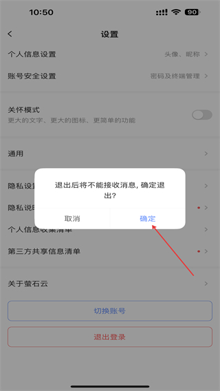 3、进入设置的页面内,点击最下方退出登录的按钮。