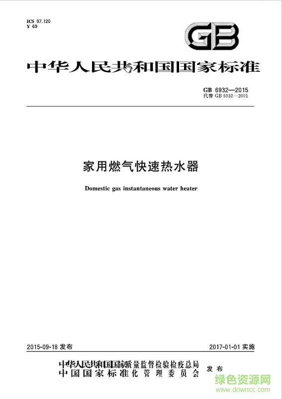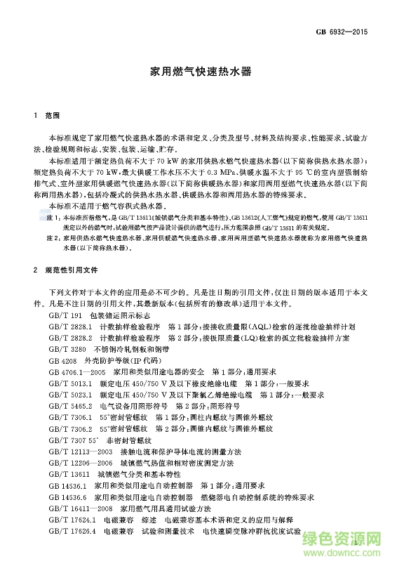 gb 6932 2015 pdf家用燃气快速热水器是国家2015年开始执行的家用燃气快速热水器行业国家标准文件,帮助行业内各公司了解使用设备的安全范围,有需要的朋友可以来绿色资源网下载使用!