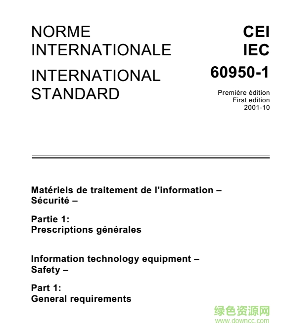 iec60950中文版是专为电气行业的朋友的造的电气标准准则,该pdf已翻译成中文版,需要的朋友赶紧来绿色资源网下载吧