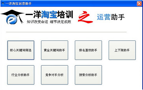 一洋淘宝运营助手是一款专业的淘宝店铺运行工具,其提供店铺体检、核心词助手、黄金词助手、标题优化助手等多项功能。使用该软件能够对淘宝关键词进行核心筛选、排名查找、宝贝上下架查找、行业分析、竞争对手分析等功能,让淘宝店主不再担忧自己店铺的流量问题,为你带来最大的帮助,可以让您的淘宝店铺出现在搜索排名靠上的位置,从而增加您店铺的知名度,提高销量。一洋淘宝运营助手包括淘宝培训的很多VIP课程,百倍提升SEO工作效率!软件已更新到11月29日最新版本。解压运行软件输入任意帐号密码登录即可。