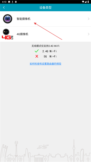 2、在设备类型的页面内,点击智能摄像机的按钮。