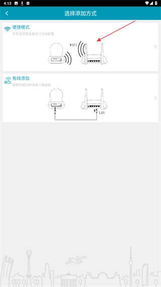 3、在选择添加方式的页面内,点击便捷模式的按钮。
