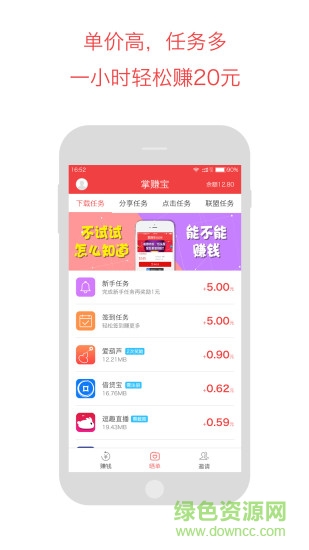 掌赚宝iphone版是一款非常好用的做任务赚钱app,这里有丰富的任务资源,包括阅读转发赚钱、试玩游戏应用赚钱、看广告赚钱等,用户只需要利用自己的闲暇时间动动手指即可轻松赚钱,欢迎有需要的朋友到绿色资源网下载使用!