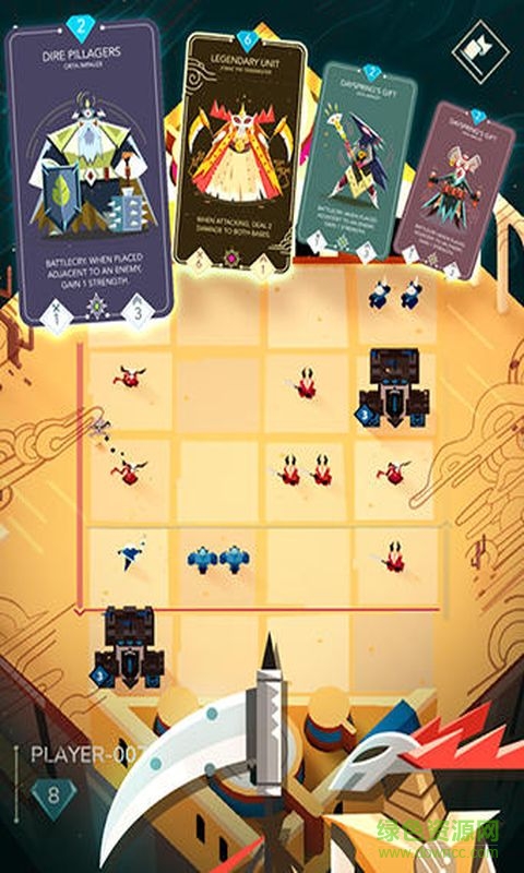这款游戏将纸牌游戏与战棋游戏的策略精髓玩法相结合,在指尖就可以点触操纵你的棋盘格局。前进!向敌方阵营!