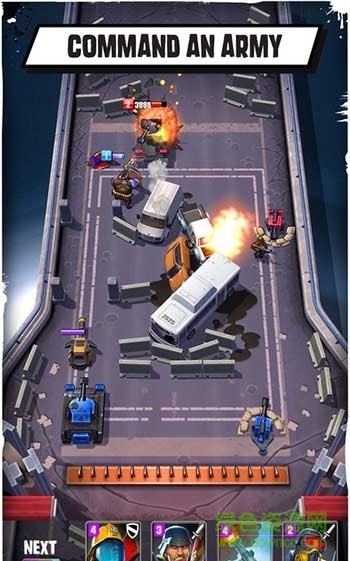 是《皇室战争》玩法,玩家需要部署各种特长不同的佣兵剿灭前来骚扰基地的丧尸,而我方则要保证炮塔驻守的最后防线不被突破!