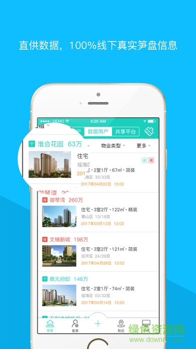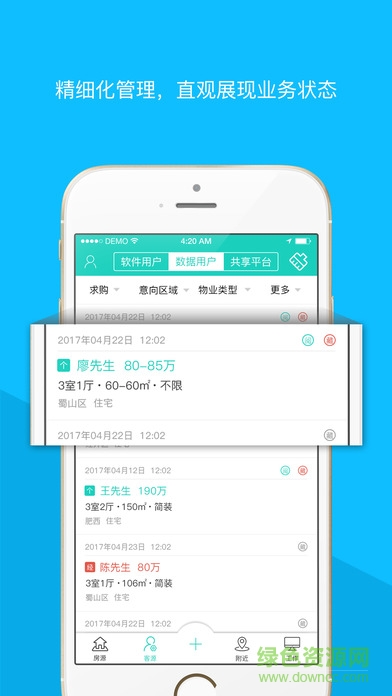 房源数据随身带,一键拨号速度快,附件房源一览无余,提供工作效率,快速促进成交