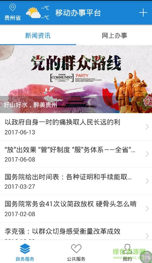 贵州电子政务网app是一款服务于贵州市民的网上办事客户端。提供了医疗、教育、出境、户籍、违章等方便的网上办事服务功能。可以在线查询社保、缴纳水电煤费等等。功能非常全面,是一个便捷的移动政务平台,快来绿色资源网下载使用吧。
